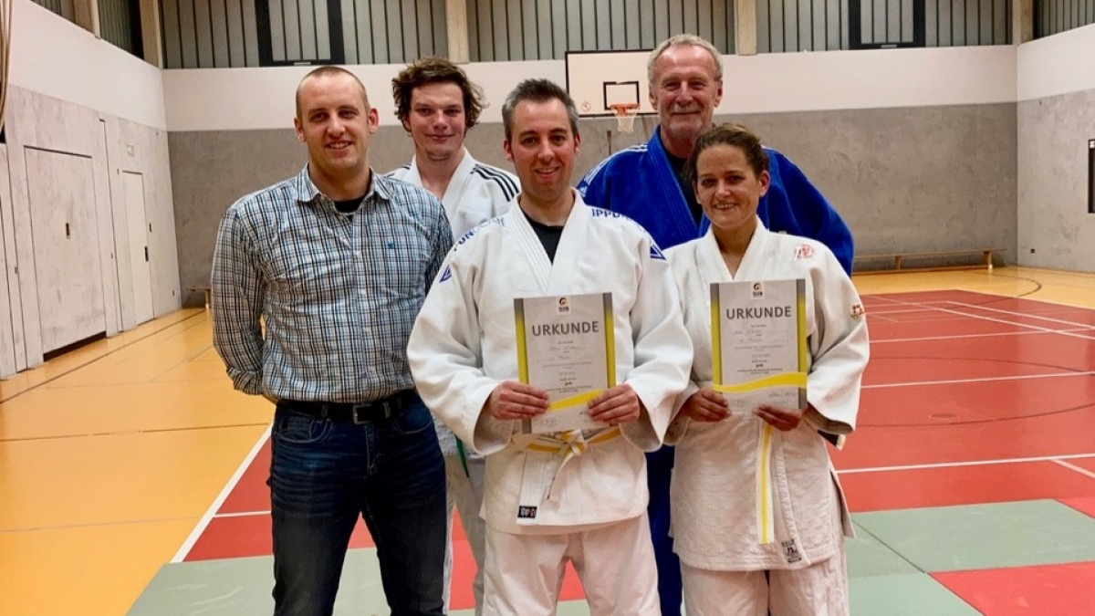 Die Prüflinge Anne Deitmar und Oliver Ricken zeigten ihr gelerntes Wissen und die geübten Techniken mit Bravour vor dem Prüfer. Sie bestanden ihre Prüfung zum 7. Kyu, wodurch sie mit dem Erhalt des gelben Gürtels nun auch berechtigt sind an offiziellen Wettkämpfen teilzunehmen, da sie über alle Grundlagen des Werfen und Fallens, sowie im Bodenkampf des Haltens und Befreiens verfügen.